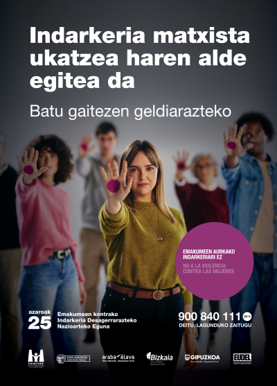 Emakumeen aurkako indarkeria gaitzesteko eguna aldarrikapen egun bihurtu dugu beste urtebetez. Horretarako hainbat jarduera antolatu ditugu: geletan Beldur Barik txapelketara bidali dugun bideoa ikusi eta gaiaz hausnartu dugu, gero, beheko solairua apaindu dugu aterki moreekin eta aldarrikapenez jositako tantekin.