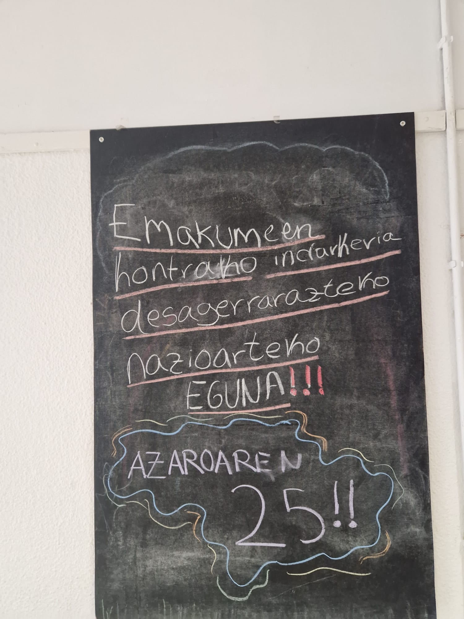 Un año más hemos convertido el día del rechazo a la violencia contra las mujeres en una jornada reivindicativa. Para ello hemos organizado varias actividades: hemos visto en las aulas el vídeo enviado al concurso Beldur Barik y hemos reflexionado sobre el tema, luego hemos decorado la planta baja con paraguas morados y gotas que reflejaban nuestras reflexiones.