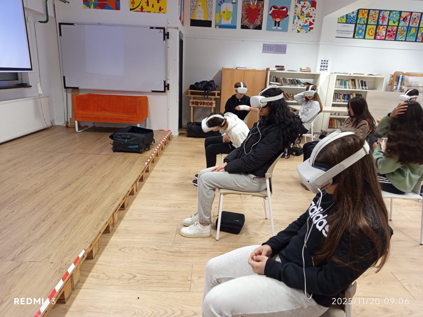 Esta semana el alumnado de cuarto ha tenido la oportunidad de realizar una original actividad con gafas de realidad virtual dentro del programa Loturak Zabaldu impulsado por la Consejería de Justicia y Derechos Humanos del Gobierno Vasco. El programa gira en torno a una obra de realidad virtual que recoge los testimonios de tres mujeres jóvenes migradas, y a través de esta experiencia inmersiva, se busca generar empatía, cuestionar estereotipos y propiciar un diálogo crítico en torno a los retos de la acogida y la convivencia en sociedades diversas.