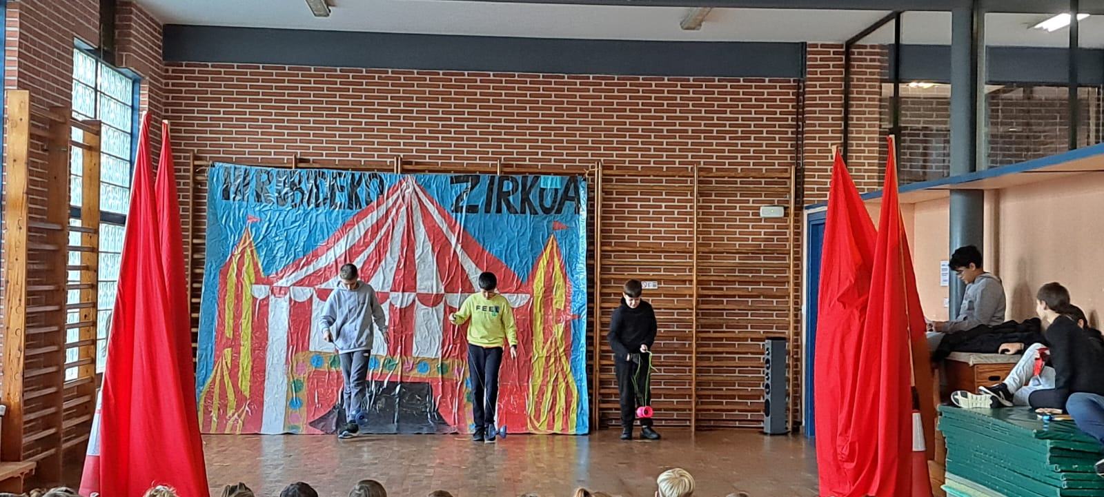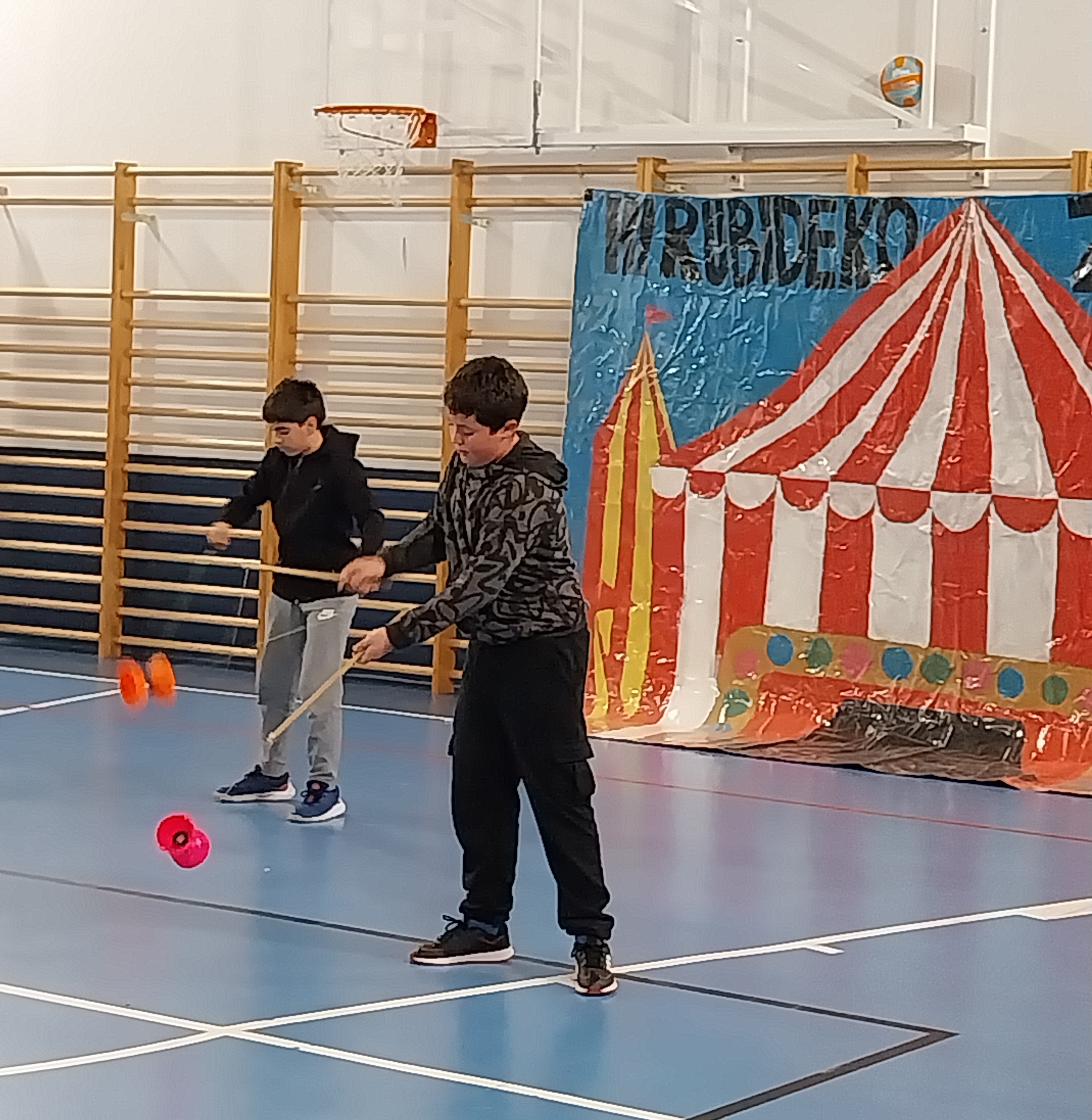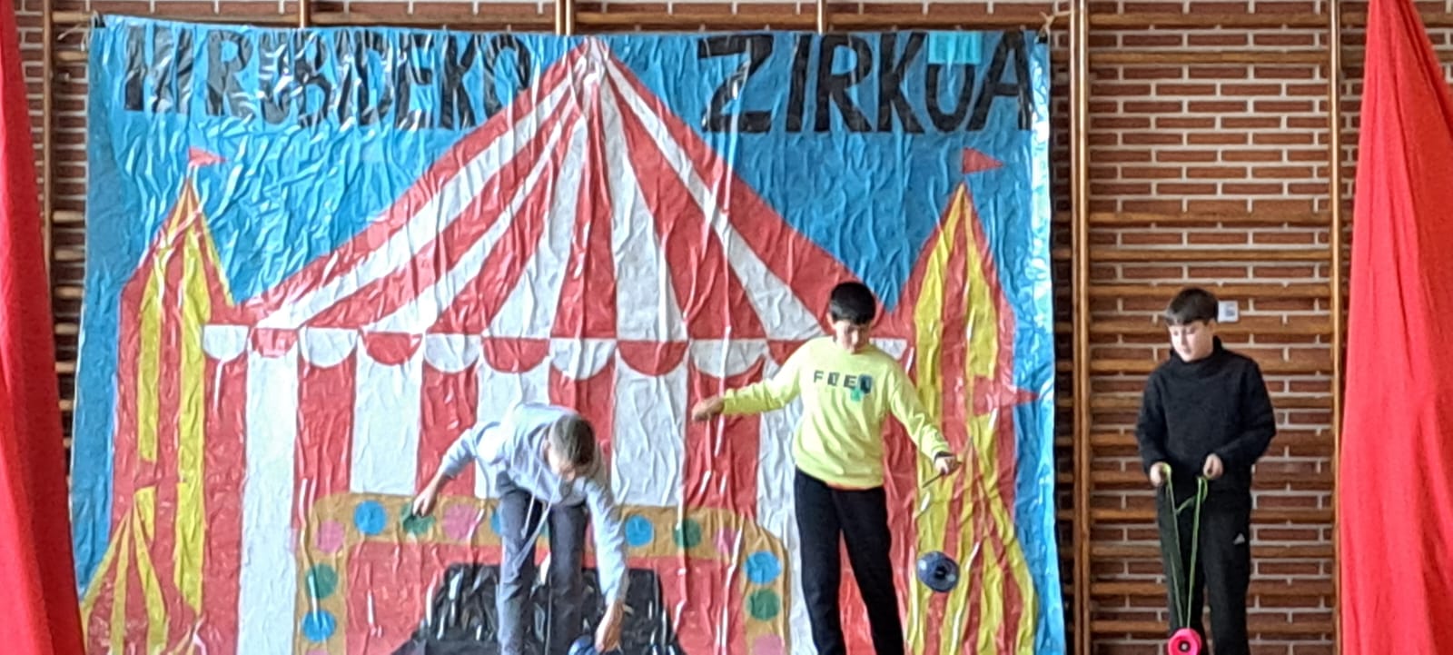 Aste honetan, Hirubideko 1.DBHko ikasleak Elatzetara eta Lekaeneara joan dira bertako Haur Hezkuntzako ikasleei zirku ikuskizun bat eskeintzera. Hilabete pare bat egon dira prestaketa lanetan, eta emaitza benetan ederra izan da. Malabaristak, pailazoak, akrobatak, dantzariak, magoak eta bestelakoak ikusteko aukera bikaina izan dute Elatzetako eta Lekaeneako Haur Hezkuntzako ikasleek.